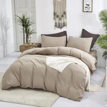 Lightweight, breathable comforter set brings modern warmth to your bedroom. The cream and khaki tones create a serene, inviting atmosphere while keeping your space stylish and calming.